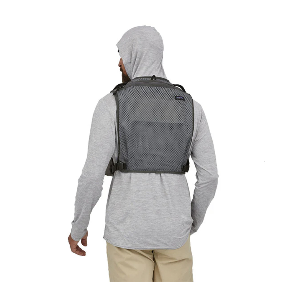Este vest se puede usar solo o unido a la parte delantera de una mochila; la configuración vertical de los bolsillos entrega máxima organización y comodidad; la malla del cuerpo es liviana y respirable