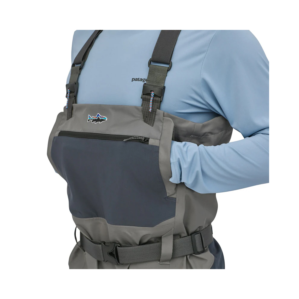 Nuestro Men’s Swiftcurrent Waders, de peso medio, son impermeables y transpirables tienen tirantes EZ-Lock montados en la cintura para una rápida conversión de la altura del pecho a la altura de la cintura. Las características incluyen un bolsillo interior impermeable, un bolsillo para calentar las manos, un cierre superior con cordón ajustable, un bolsillo en el pecho de tejido elástico y botines anatómicos.